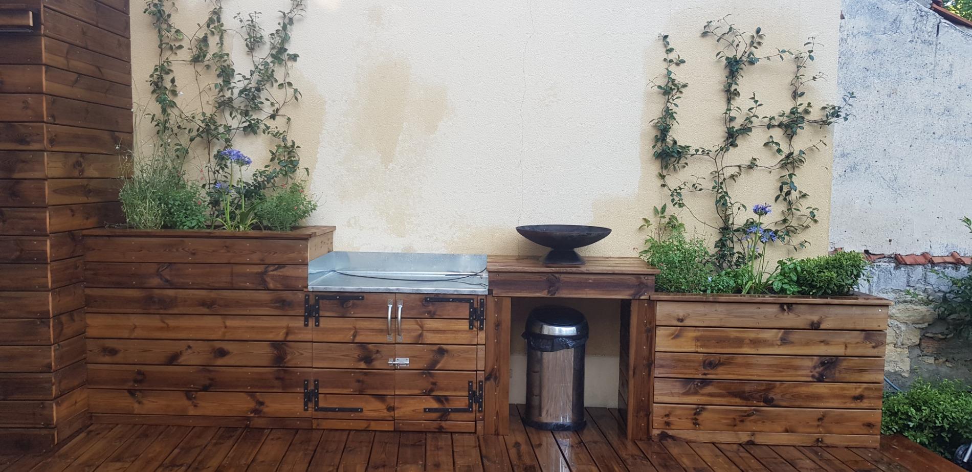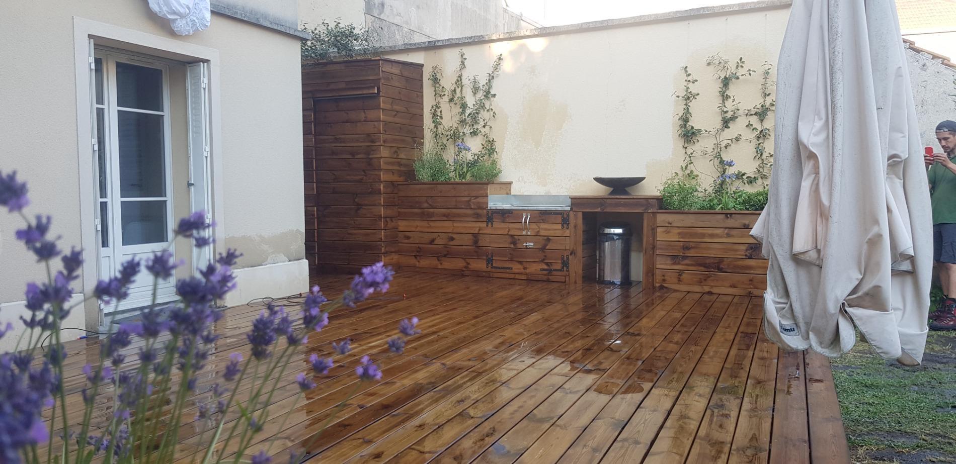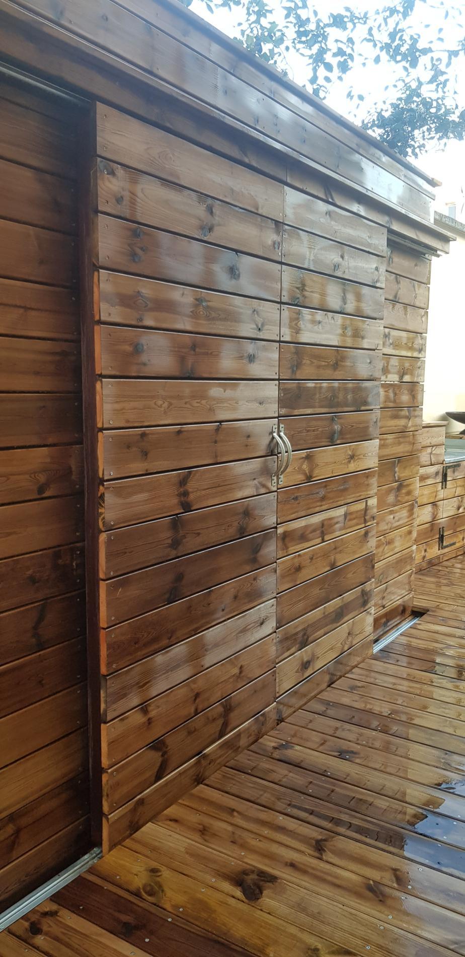 Création d'une cuisine d'été et d'un rangement à vélo avec porte coulissante
